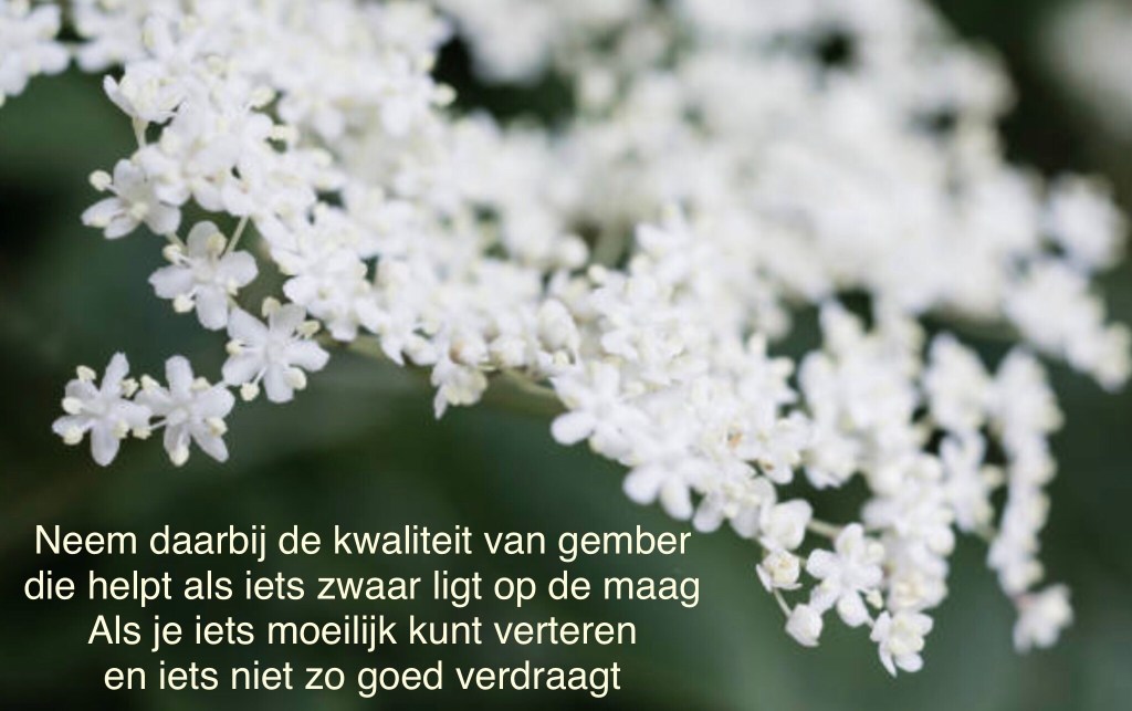 De hoeveelheden gember en vlierbloesem bepaal je naar eigen smaak en gevoel.