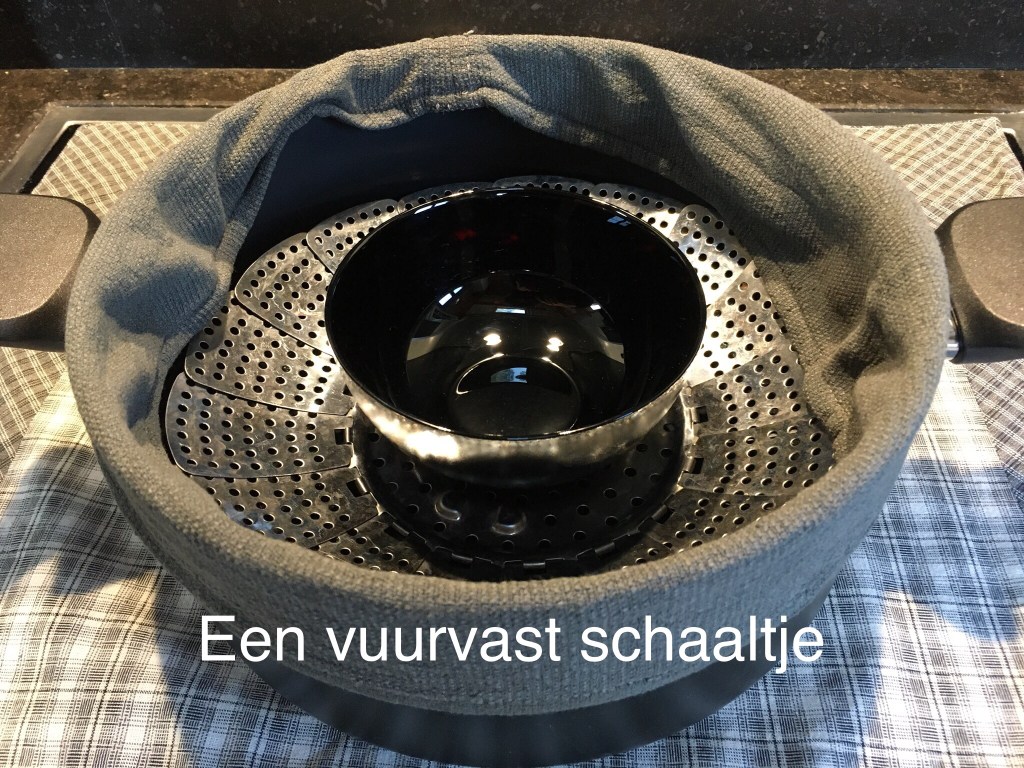 (Let wel op dat die niet met de vlam in aanraking komt!)