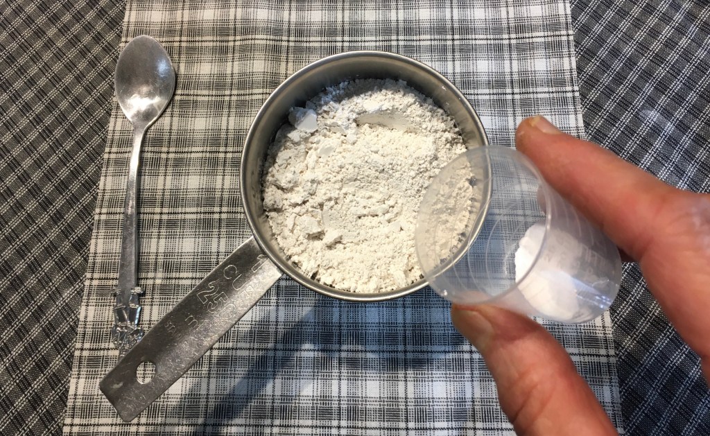 – Voeg de baking soda toe aan de diatomeeënaarde (of calciumcarbonaat).