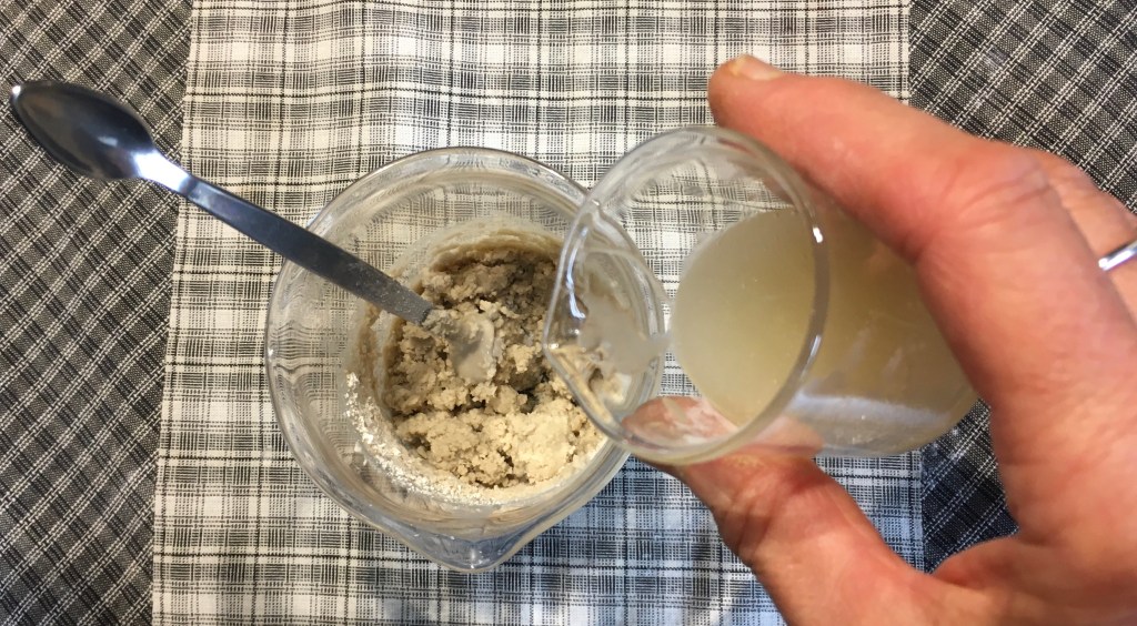 – Voeg nu de witte klei toe met een niet-metalen lepel of spatel…