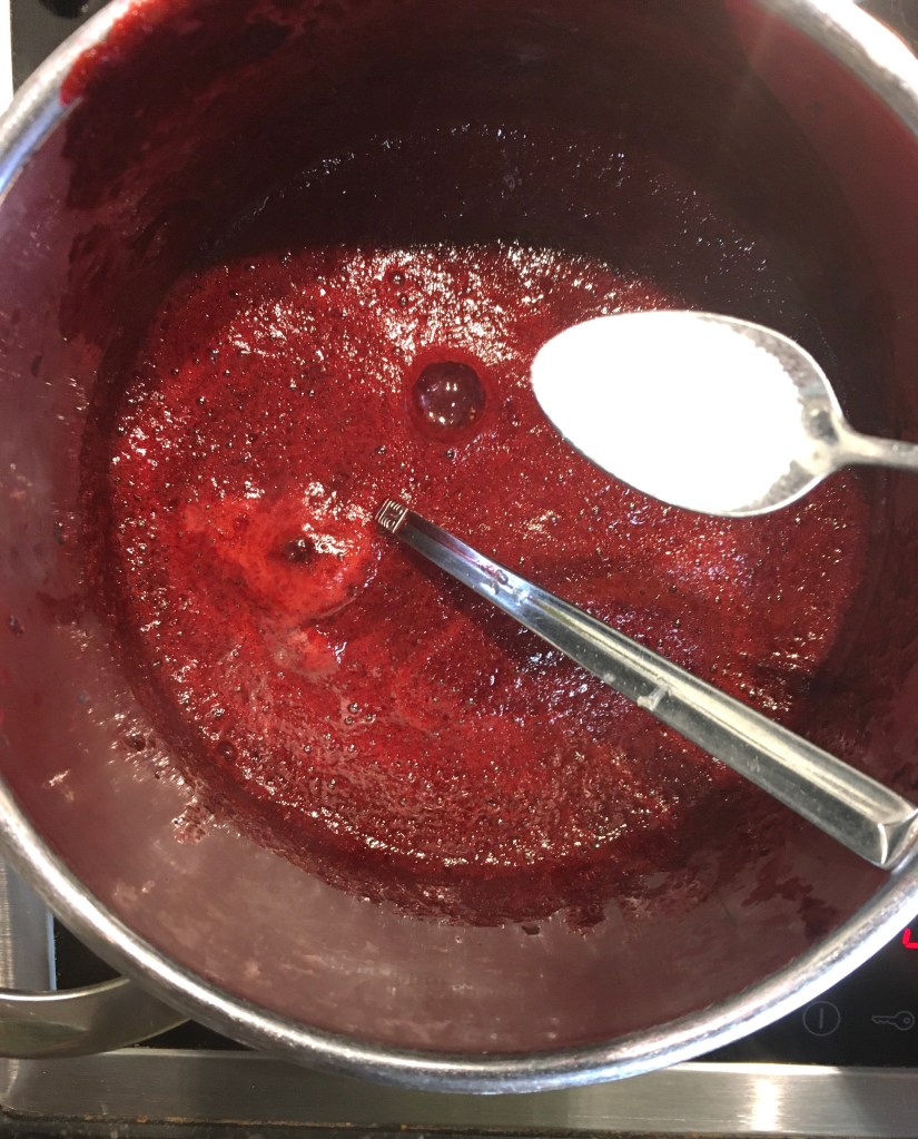 * 600 ml bramensap (doordat je de bramen hebt ontdaan van de pitjes in de passe-vite)