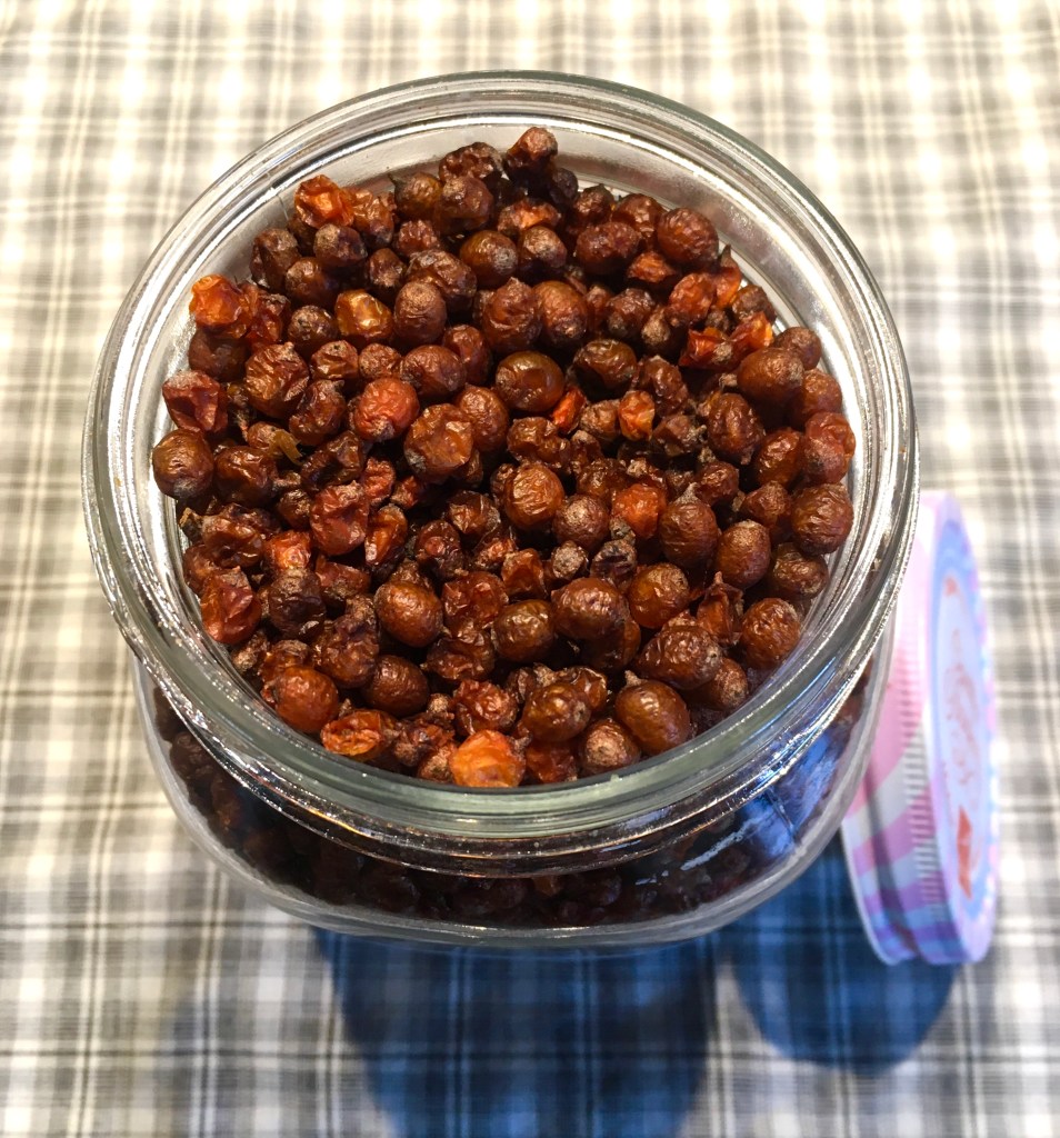 Heb je een droogoventje, kun je de besjes daarin verder drogen op een temperatuur van 35 – 40 graden.