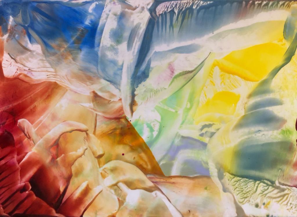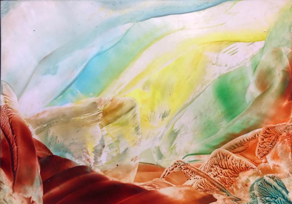 als je goed kijkt, zul je er allerlei figuren en bijzonderheden in ontdekken, die jou kunnen vertellen over in jou levende -tot nu toe- onbewuste dingen, die door middel van jouw was-schilderijtje tot uitdrukking worden gebracht. Het lijkt wel magie!