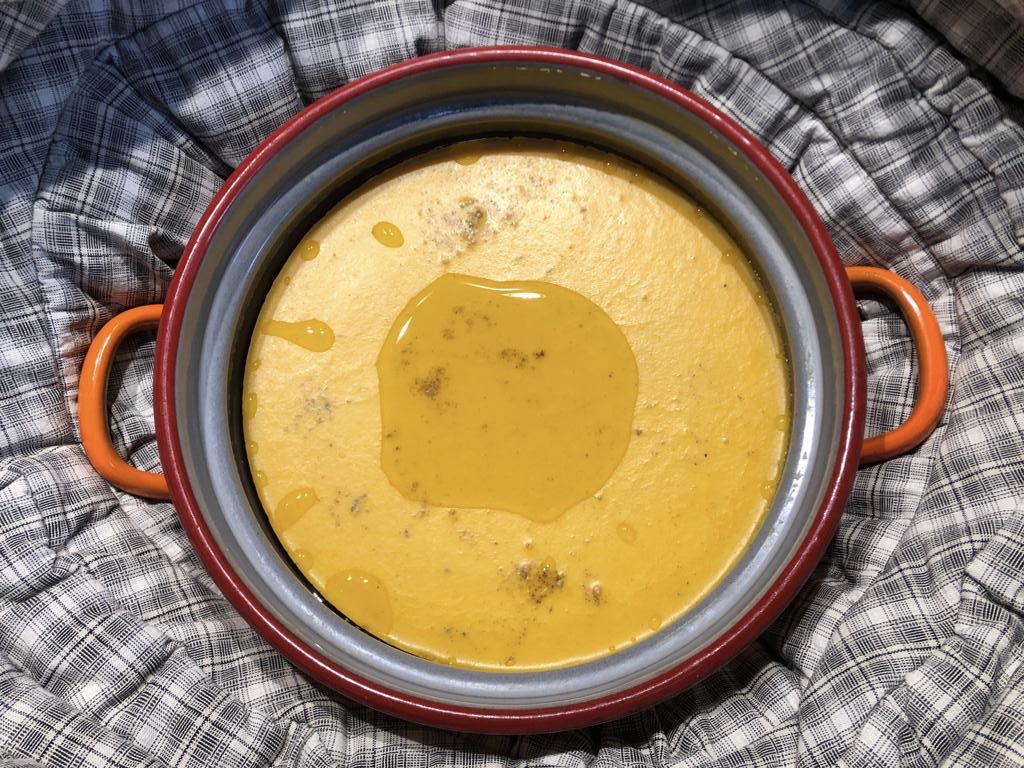 – Na 24 uur in de hooimadame is de was vaak nog zacht, maar wel gestold. Dit is het moment om de was uit de pan te halen.