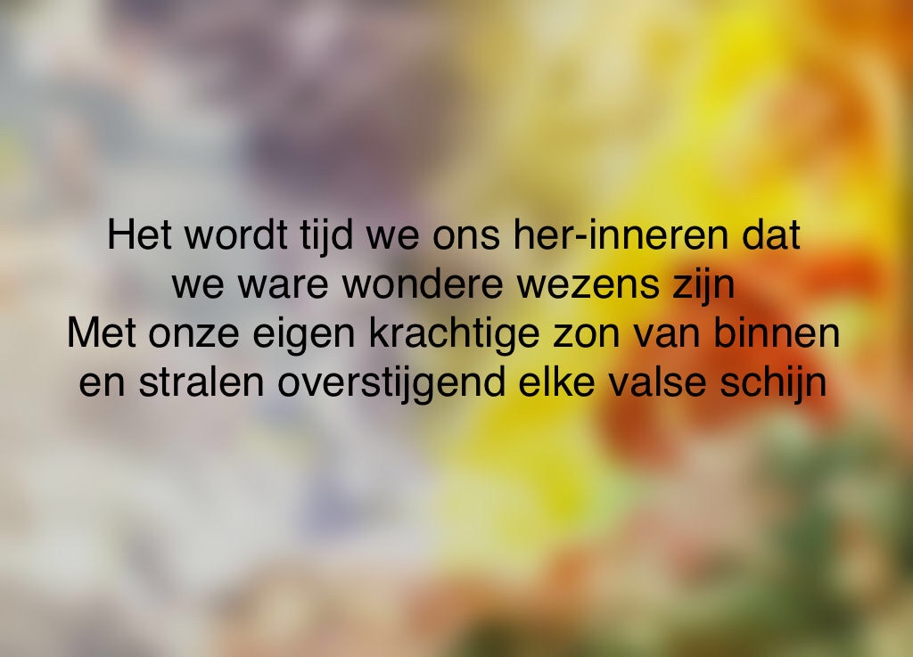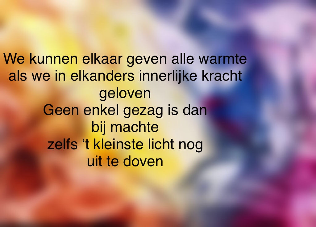 Ik hoop dat mijn verhaal heeft bijgedragen om, in de eerste plaats naar jou zelf en ook naar je gezin… je familie…je vrienden… de wereld…, jouw warmte, liefde en licht uit te stralen, want…