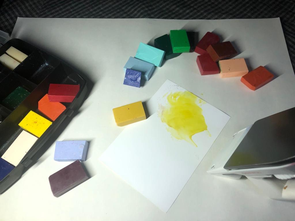 Ik kwam op het idee om wastekeningen te gaan maken, ook wel ‘Encaustic Art’ genoemd.