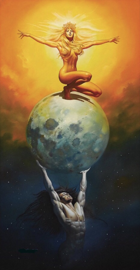 ‘De man vertegenwoordigt het actieve principe. Voor de man, om een heel mens te worden, moet hij vrouw worden, ontvankelijk, open en passief. Om tot het passieve te geraken dient hij alles te laten gebeuren. Zijn vrouwe is zijn ingewijde, leermeester en begeleider. Niets is in zijn macht, zelfs zijn leven niet. Hij moet bereid zijn te sterven aan de liefde. Zij toont hem het gezicht van de Dood en de manifestatie van zijn diepste angsten, omdat ze de Grote Moeder vertegenwoordigt die over dood en leven heerst. Niets mag een man doen om zijn lot te bepalen, alleen ondergeschikt zijn aan de liefde, en haar ten volle accepteren. Alleen zo wordt een man werkelijk man/mens. Hij moet liggen om op te staan, zich totaal overgeven om te kunnen triomferen, zich laten leiden om zichzelf te vinden’.